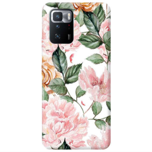 Θήκη Xiaomi Poco X3 GT Pink rose and laves Transparent Silicone TPU