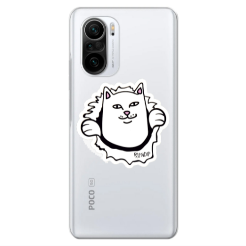 Θήκη Xiaomi Poco F3 White cat Black Glossy