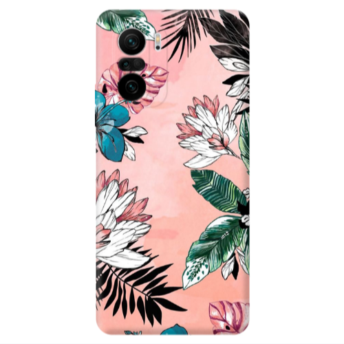 Θήκη Xiaomi Poco F3 White Flowers Black Colored Silicone TPU