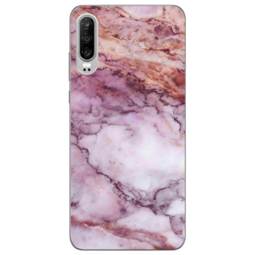 Θήκη Huawei P30 Marble Brown And Pink Red Colored Silicone TPU