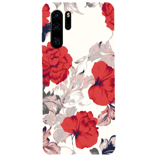 Θήκη Huawei P30 Pro Red Flowers Black Colored Silicone TPU