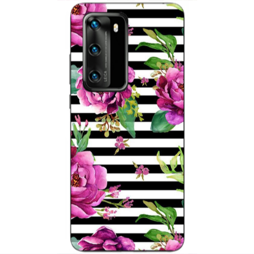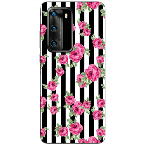 Θήκη Huawei P40 Roses and black line Black Glossy