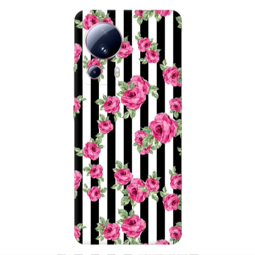 Θήκη Xiaomi Mi 13 Lite Roses and black line Black Colored Silicone TPU