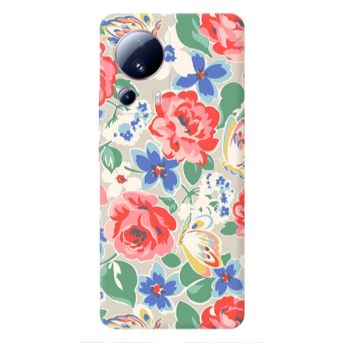 Θήκη Xiaomi Mi 13 Lite Red and pink Flowers Yellow Colored Silicone TPU