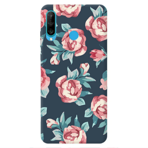Θήκη Huawei P30 Lite Purple roses Transparent Silicone TPU