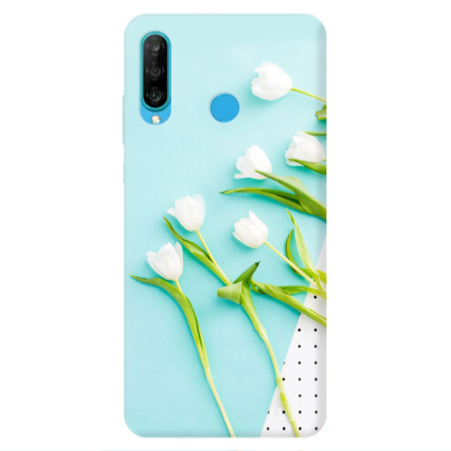 Θήκη Huawei P30 Lite White Tulips Red Colored Silicone TPU