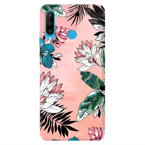 Θήκη Huawei P30 Lite Tropical flowers Red Colored Silicone TPU