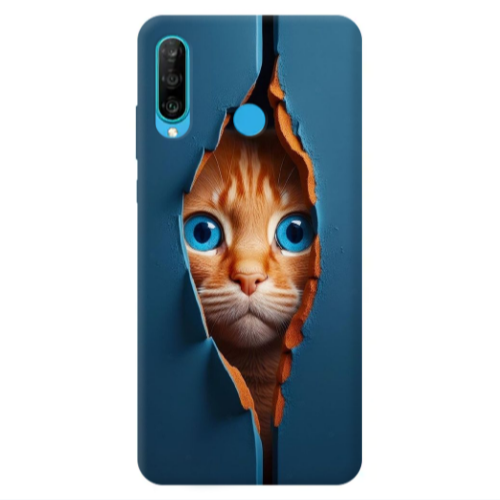 Θήκη Huawei P30 Lite Cat Blue Eyes Red Colored Silicone TPU