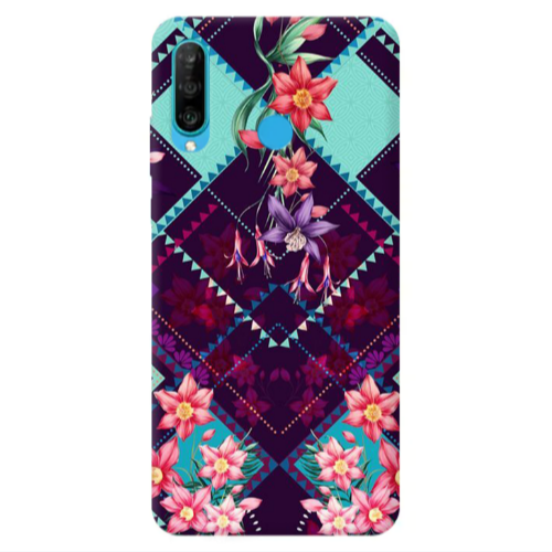 Θήκη Huawei P30 Lite Checkered flowers Red Colored Silicone TPU
