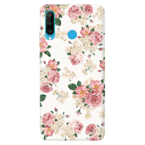 Θήκη Huawei P30 Lite Pink Flowers 2 Transparent Silicone TPU