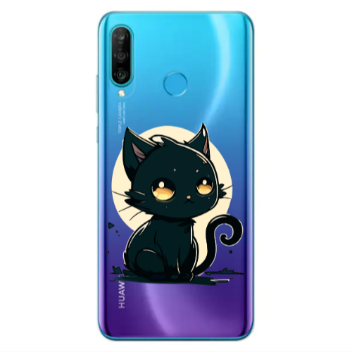 Θήκη Huawei P30 Lite Black Cat Red Colored Silicone TPU
