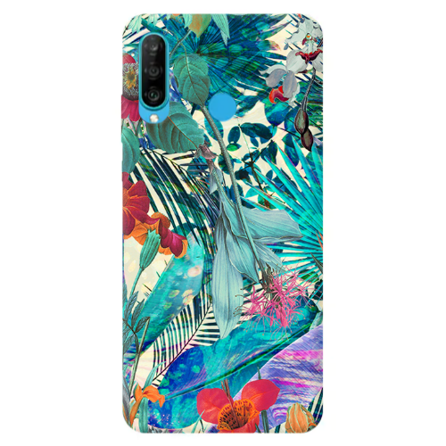 Θήκη Huawei P30 Lite Blue laves tropical Transparent Silicone TPU