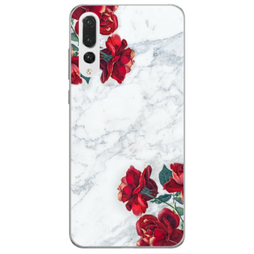 Θήκη Huawei P20 Pro Marble and roses Black Colored Silicone TPU