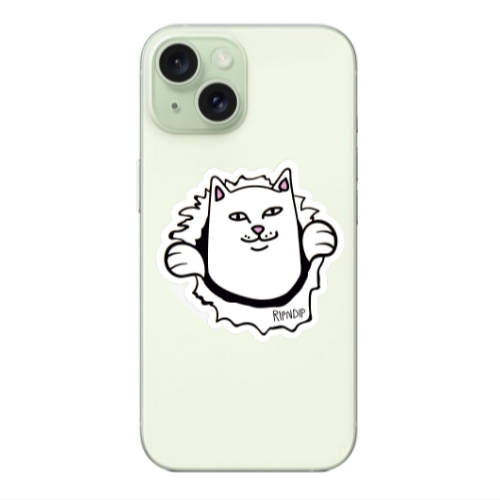 Θήκη Apple iPhone 15 White cat Black Colored Silicone TPU