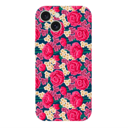 Θήκη Apple iPhone 15 Red and pink Flowers Red Colored Silicone TPU