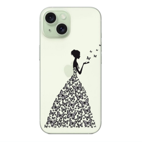 Θήκη Apple iPhone 15 Butterfly Girl Black Colored Silicone TPU