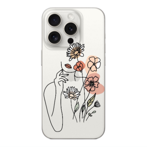 Θήκη Apple iPhone 15 Pro Lady with Flowers Transparent Silicone TPU