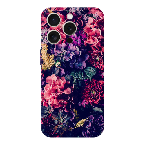 Θήκη Apple iPhone 15 Pro Max Purple and pink flowers Pink Colored Silicone TPU