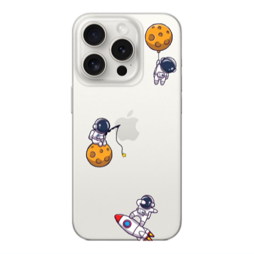 Θήκη Apple iPhone 15 Pro Max Cute astronauts Pink Colored Silicone TPU