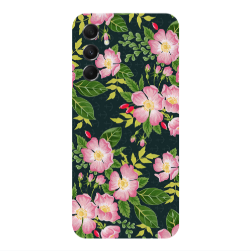 Θήκη Samsung M34 Pink flowers green laves Transparent Silicone TPU