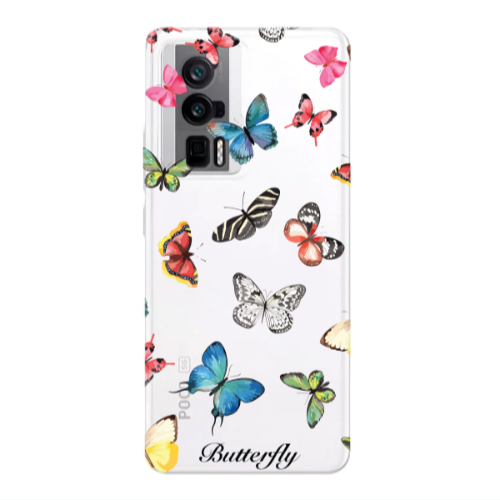 Θήκη Xiaomi Poco F5 Pro Blue butterflies Transparent Silicone TPU