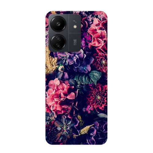 Θήκη Xiaomi Redmi 13C Purple and pink flowers Purple Colored Silicone TPU