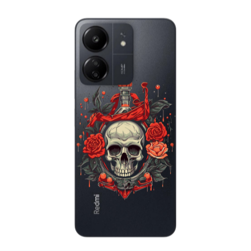 Θήκη Xiaomi Redmi 13C Skull Roses Black Colored Silicone TPU