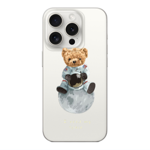 Θήκη Apple Iphone 16 Pro Bear in space Transparent Silicone TPU