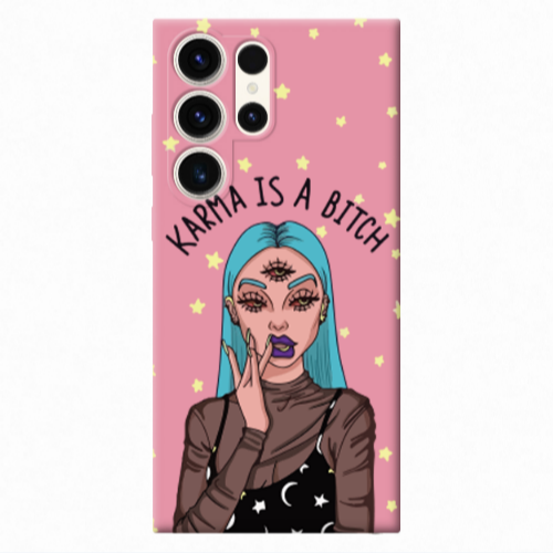 Θήκη Samsung S23 Ultra Karma is a bitch Pink Colored Silicone TPU