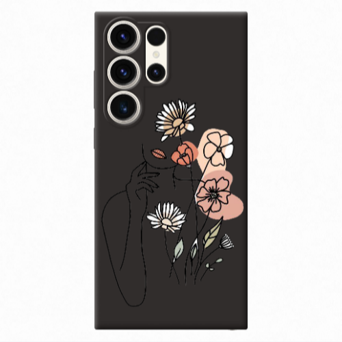 Θήκη Samsung S24 Ultra Lady with Flowers Black Colored Silicone TPU