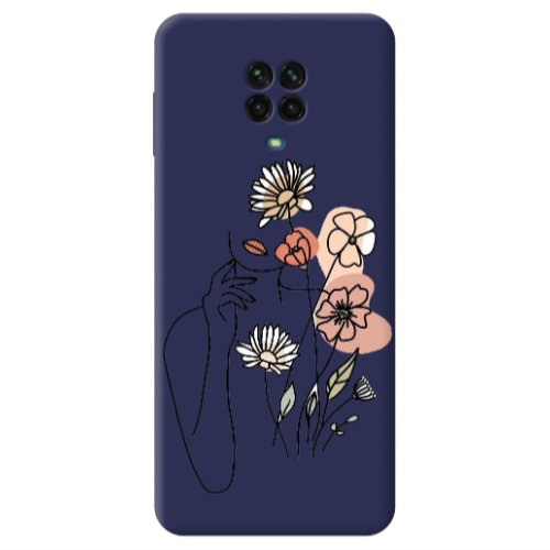 Θήκη Xiaomi Redmi Note 9 Pro Lady with Flowers Dark blue Colored Silicone TPU