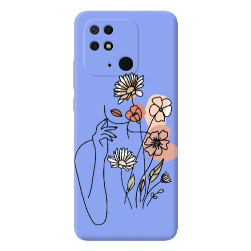 Θήκη Xiaomi Redmi 10C Lady with Flowers Light Purple Colored Silicone TPU