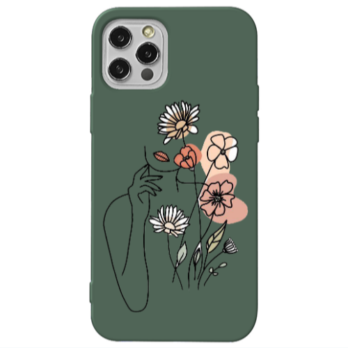 Θήκη Apple iPhone 13 Pro Lady with Flowers Dark Green Colored Silicone TPU
