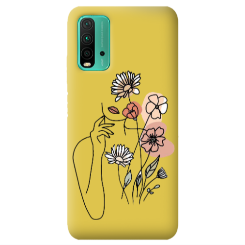 Θήκη Xiaomi Poco M3 Lady with Flowers Yellow Colored Silicone TPU