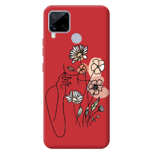 Θήκη Realme C25S Lady with Flowers Red Colored Silicone TPU