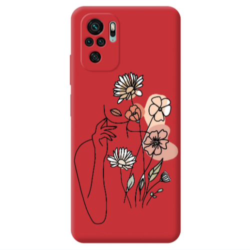 Θήκη Xiaomi Redmi Note 10S Lady with Flowers Red Colored Silicone TPU