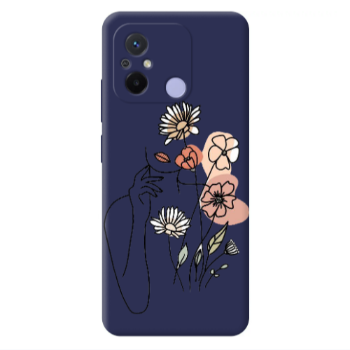Θήκη Xiaomi Redmi 12C Lady with Flowers Dark blue Colored Silicone TPU