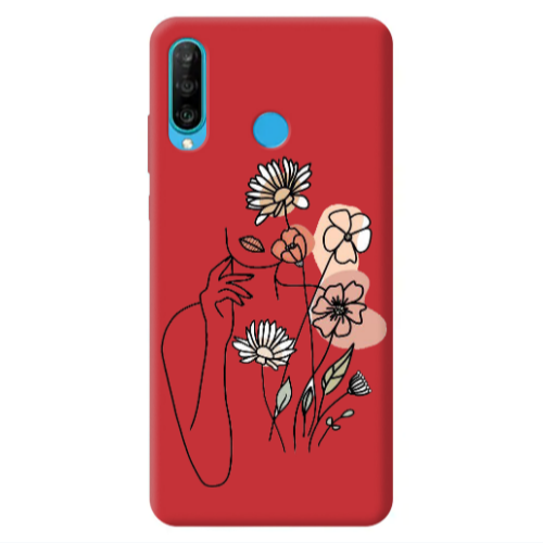 Θήκη Huawei P30 Lite Lady with Flowers Red Colored Silicone TPU