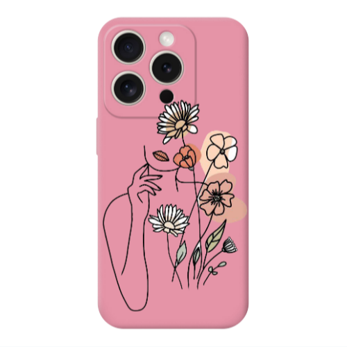 Θήκη Apple iPhone 15 Pro Lady with Flowers Pink Colored Silicone TPU