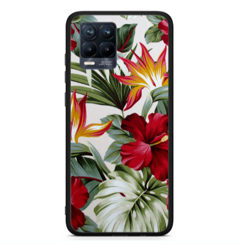 Θήκη Realme 8 laves and flowers Black Glossy