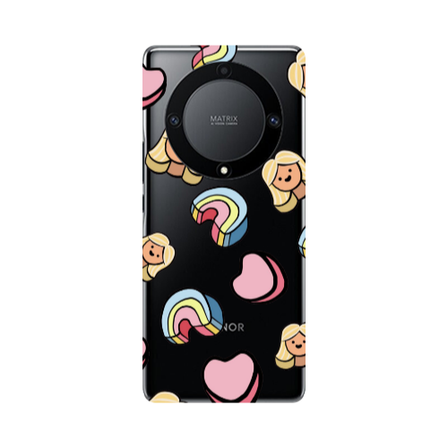 Θήκη Honor Magic5 Lite 5G Girl rainbow and hearts Transparent Silicone TPU