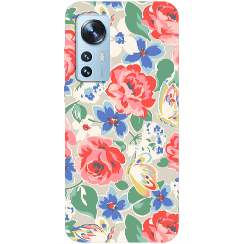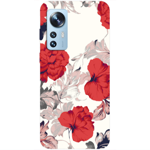 Θήκη Xiaomi Mi 12 Pro Red Flowers Transparent Silicone TPU