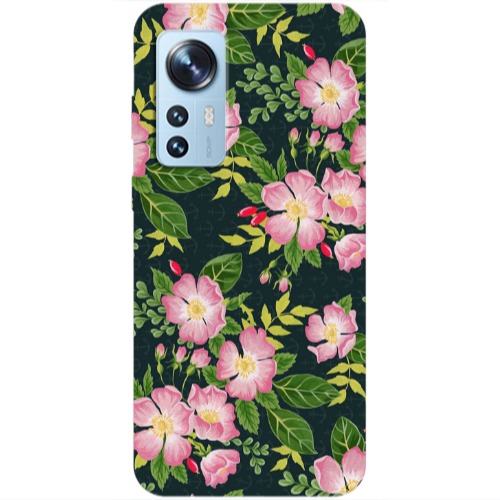 Θήκη Xiaomi Mi 12 Pro Pink flowers green laves Dark blue Colored Silicone TPU