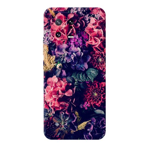Θήκη Xiaomi Mi 13 5G Purple and pink flowers Transparent Silicone TPU