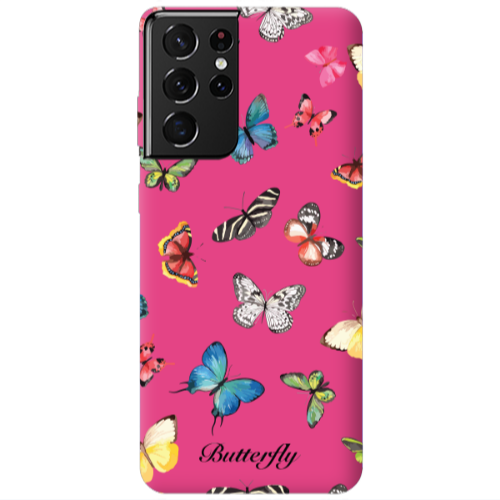 Θήκη Samsung S21 Ultra Mixed Butterflys Fuchsia Colored Silicone TPU