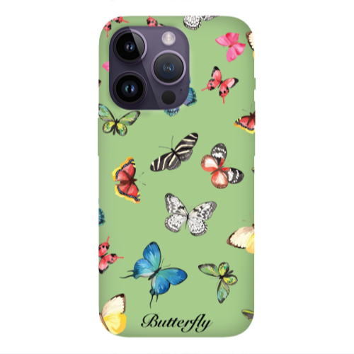 Θήκη Apple iPhone 14 Pro Max Mixed Butterflys Light Green Colored Silicone TPU