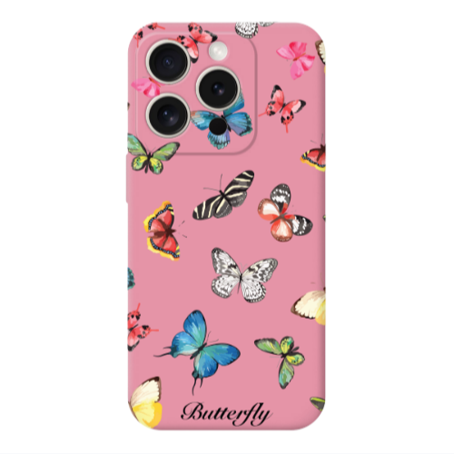 Θήκη Apple iPhone 15 Pro Mixed Butterflys Pink Colored Silicone TPU