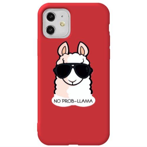 Θήκη Apple iPhone 11 No prob-lama Red Colored Silicone TPU