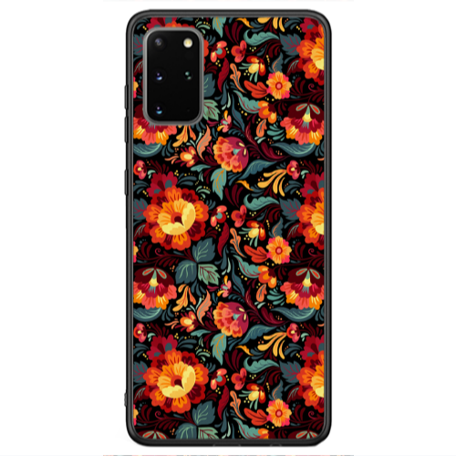 Θήκη Samsung S20 Plus Orange flowers Black Glossy