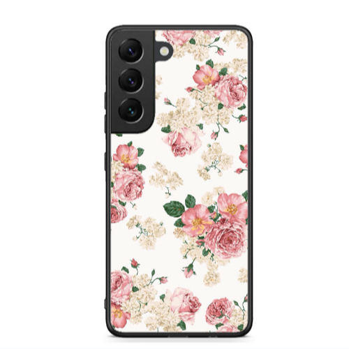 Θήκη Samsung S22 Pink Flowers 2 Black Glossy